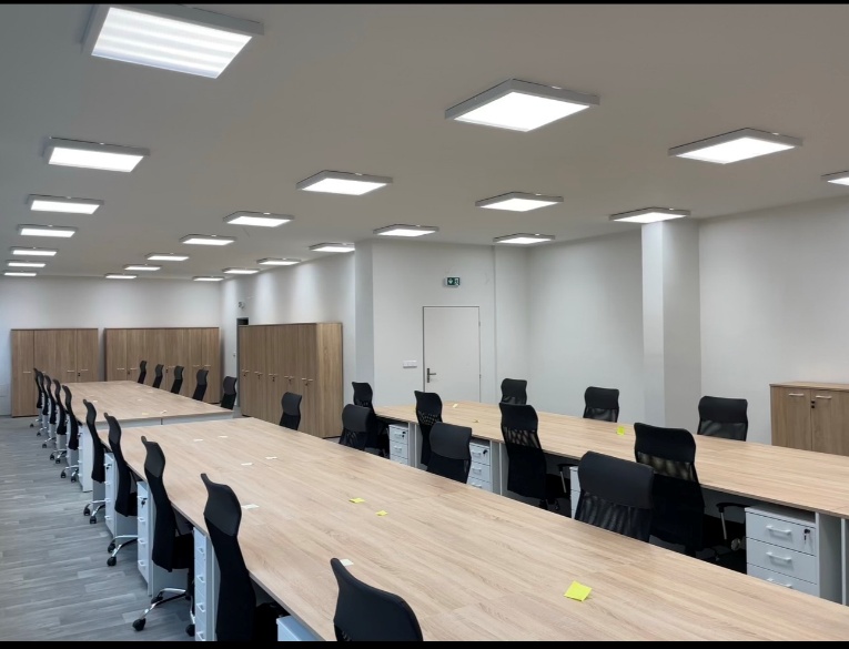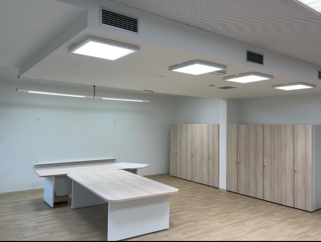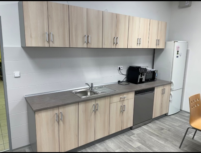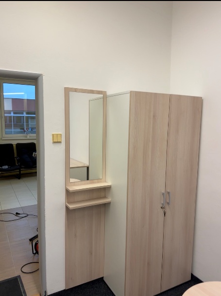 Následně jsme začali s montáží nábytku ve sborovně, sem přišlo zhruba 10 dvoukřídlých šatních skříní, 30 kancelářských stolů, kontejnerů a židlí. Nechyběl ani locker na osobní písemnosti zaměstnanců. Montáž nám zabrala 2 dny, ale výsledek stál za to. Učitelé se ke konci už seskupovali a rozdělovali si místa, proto na fotkách jsou na stolech ty lístečky.