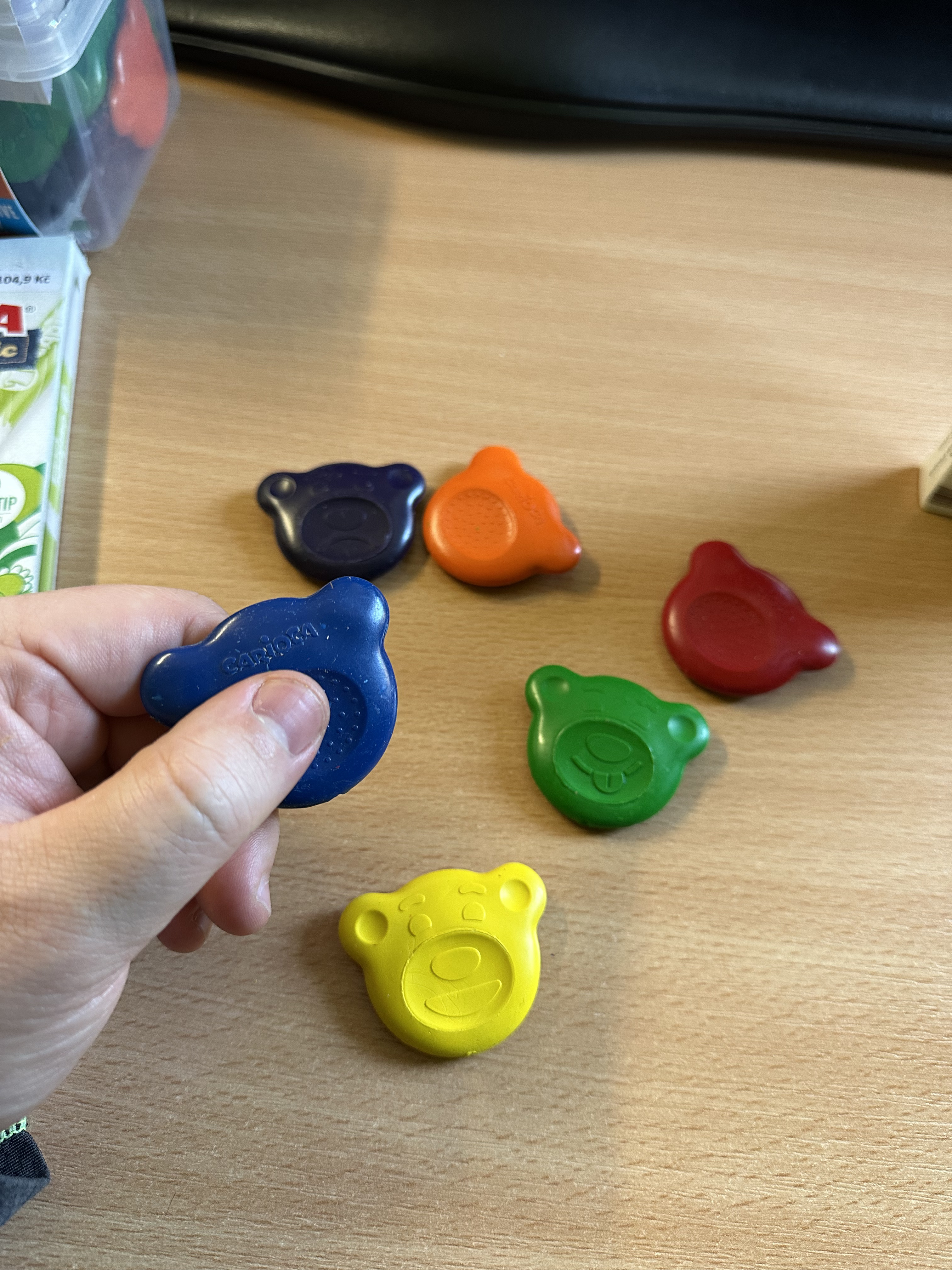 Edici Baby od této značky, ocení nejvíce rodiče těch nejmenších špuntů. Medvídkové voskovky jsou to nejlepší, jak učit děti od 1 roku jejich první kreativní pokusy na papír. Doporučuji ovšem hlídat, aby dílo neopustilo papír, jinak můžete najít výtvory vašeho mini-Picassa i na stole, židli, zemi, nebo čerstvě natřených stěnách. Naštěstí voskovky mimo papír nějak extra nebarví a při včasném zásahu by měli jít dolů i ze zdí, dnes už je většina omyvatelná. Úžasná je ergonomie, Vaše neviňátko se tak naučí správnému úchopu, zjistí, že ušima medvěda se dělají dobře tenčí čáry a bradou naopak dobře tlusté. Jak můžete vidět, voskovky jsou dostupné v 6 veselých barvách a každá má svoji emoci ve tváři tohoto tvora. Může se tak stát, že je vaše dítě začne napodobovat a tvářit se dle toho, jako barvu právě drží.