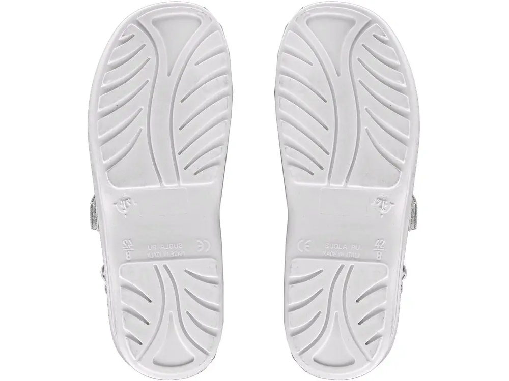 - Obuv celokožená s plnou špicí, perforovaná s přezkou na suchý zip a páskem kolem paty