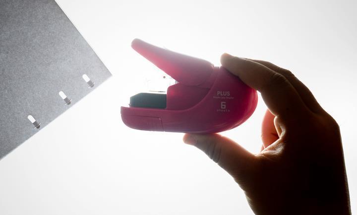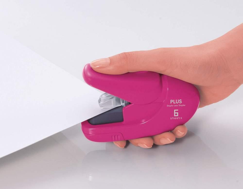 - Unikátní plastový sešívač, který sešívá bez jehel - jen vyseknutím a ohnutím papíru