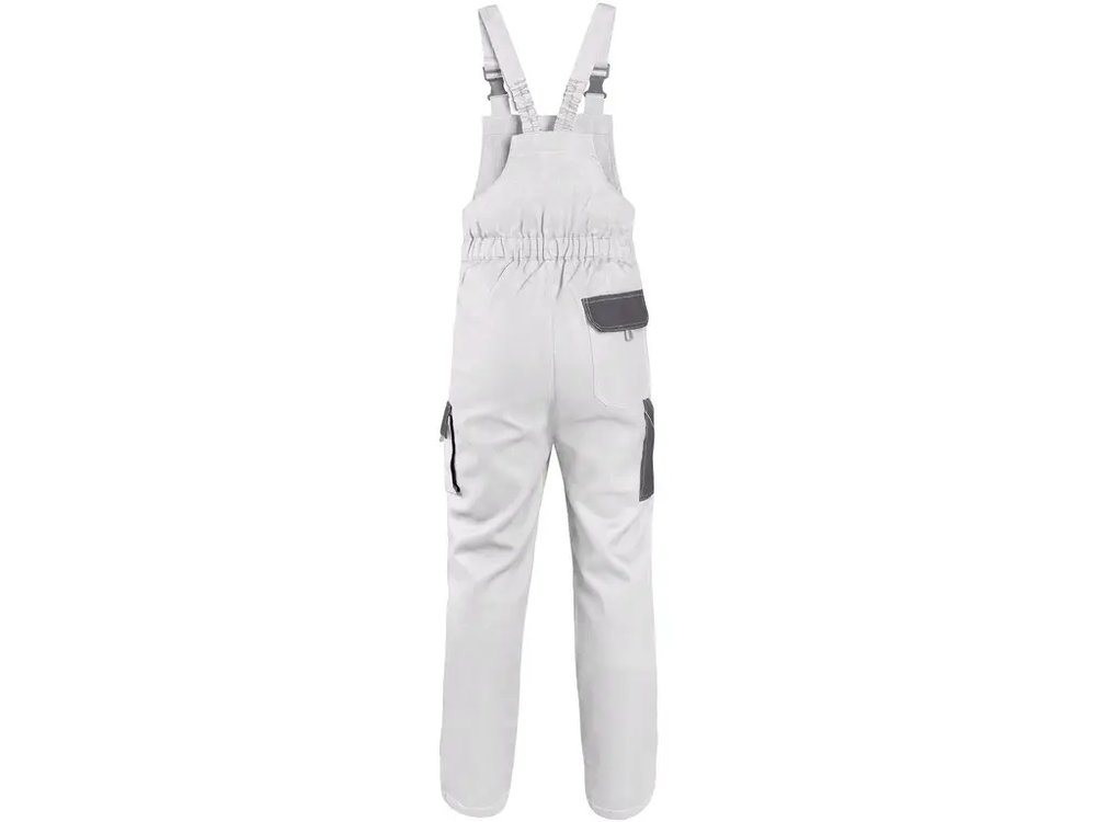 - Kalhoty LUXY ROBIN montérkové s náprsenkou se zdvojenými koleny, bílé s šedými doplňky
