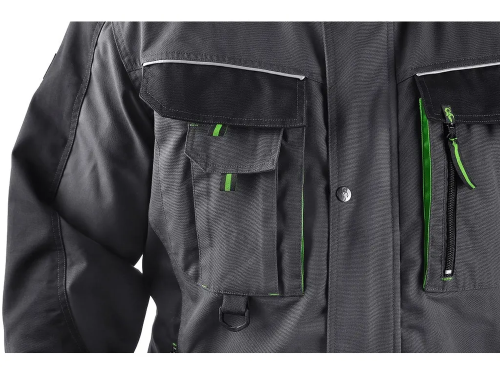 - Rukávy s nastavitelnou manžetou, kryté zapínání na zip a druky, multifunkční náprsní kapsy