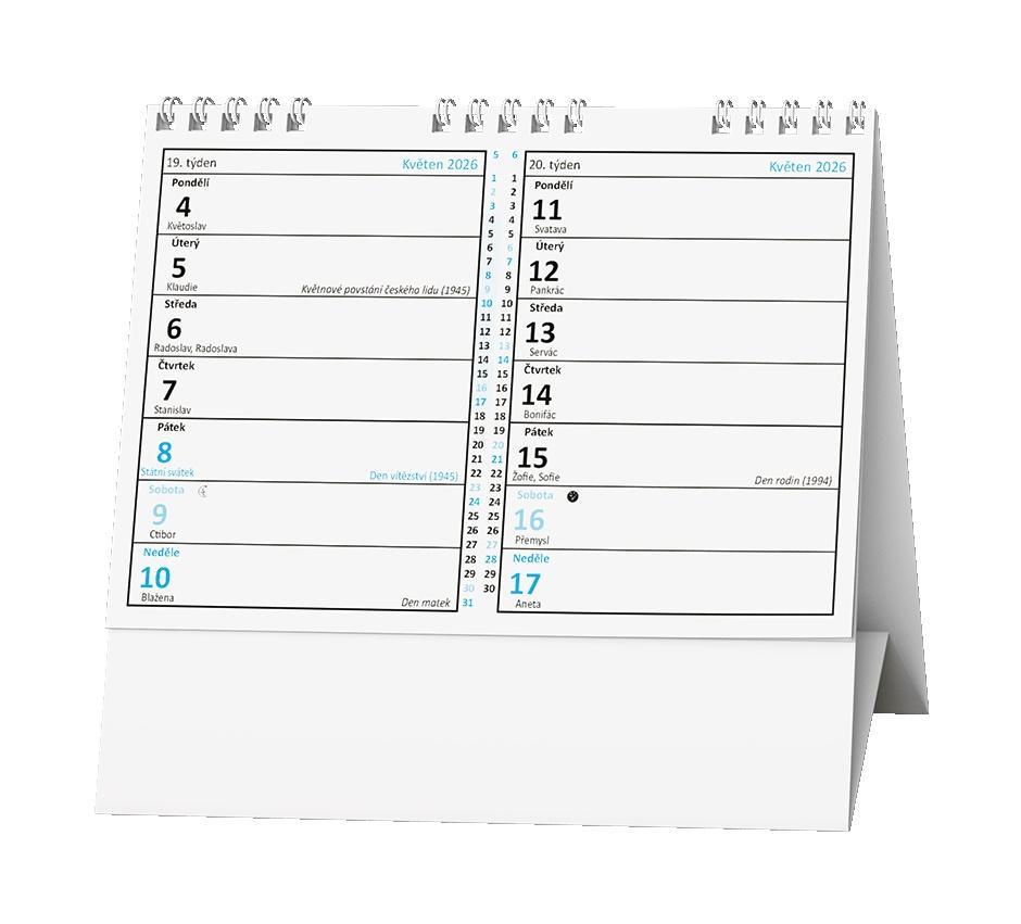 Jednoduchý a praktický pracovní kalendář se čtrnáctidenním kalendáriem v menším formátu.