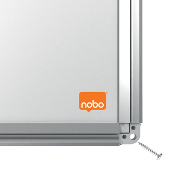 Magnetická tabule s moderním stylovým hliníkovým rámem. Upevnění v rozích do zdi, obsahuje prostornou přihrádku na popisovače a stěrku. Magnetický povrch s vysokou úrovní mazatelnosti pro časté používání. Velikost: 2000 x 1000 mm. Dodáváno s popisovačem Nobo. Záruka na povrch 15 let. Rozměry: 2006 x 994 x 17 mm