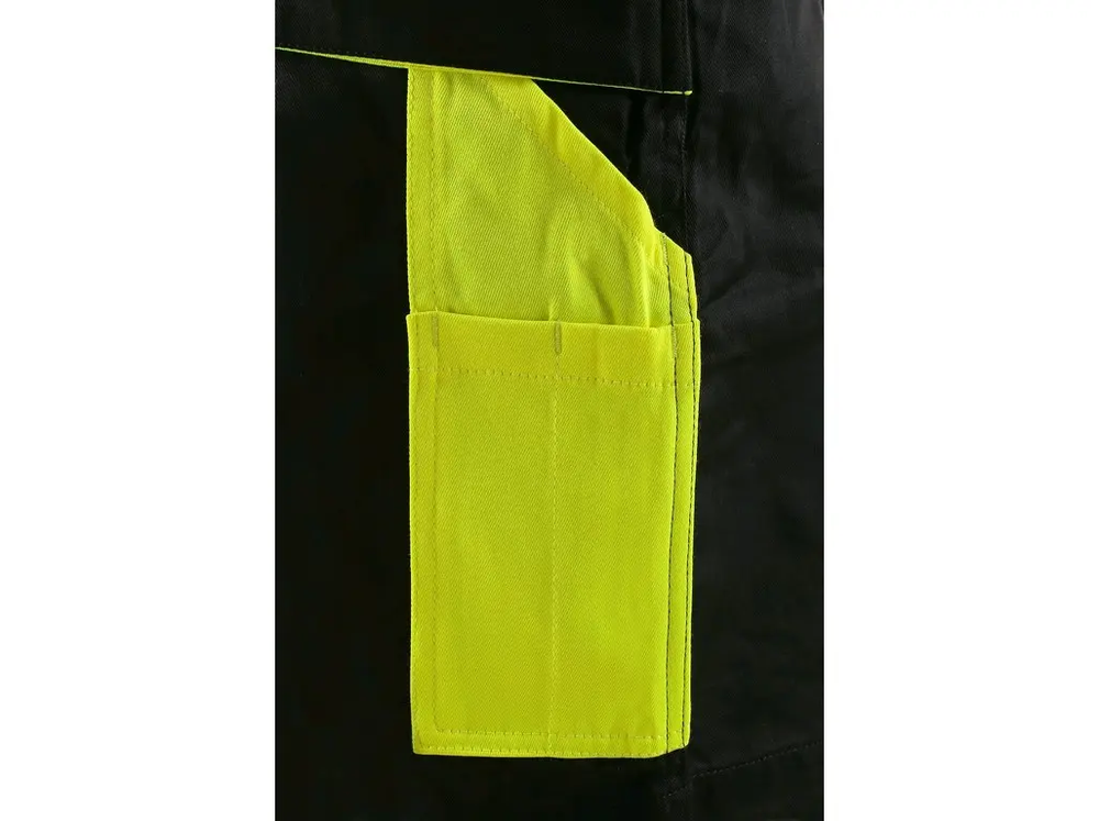 - Dvě zadní kapsy s klopami, šle s gumou vzadu, reflexní doplňky