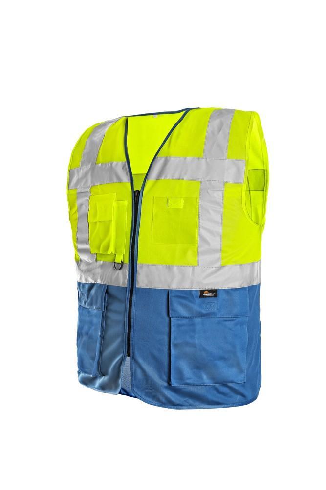 - Dvoubarevná výstražná vesta BOLTON se zapínáním na zip, 2 spodní kapsy kryté patkou