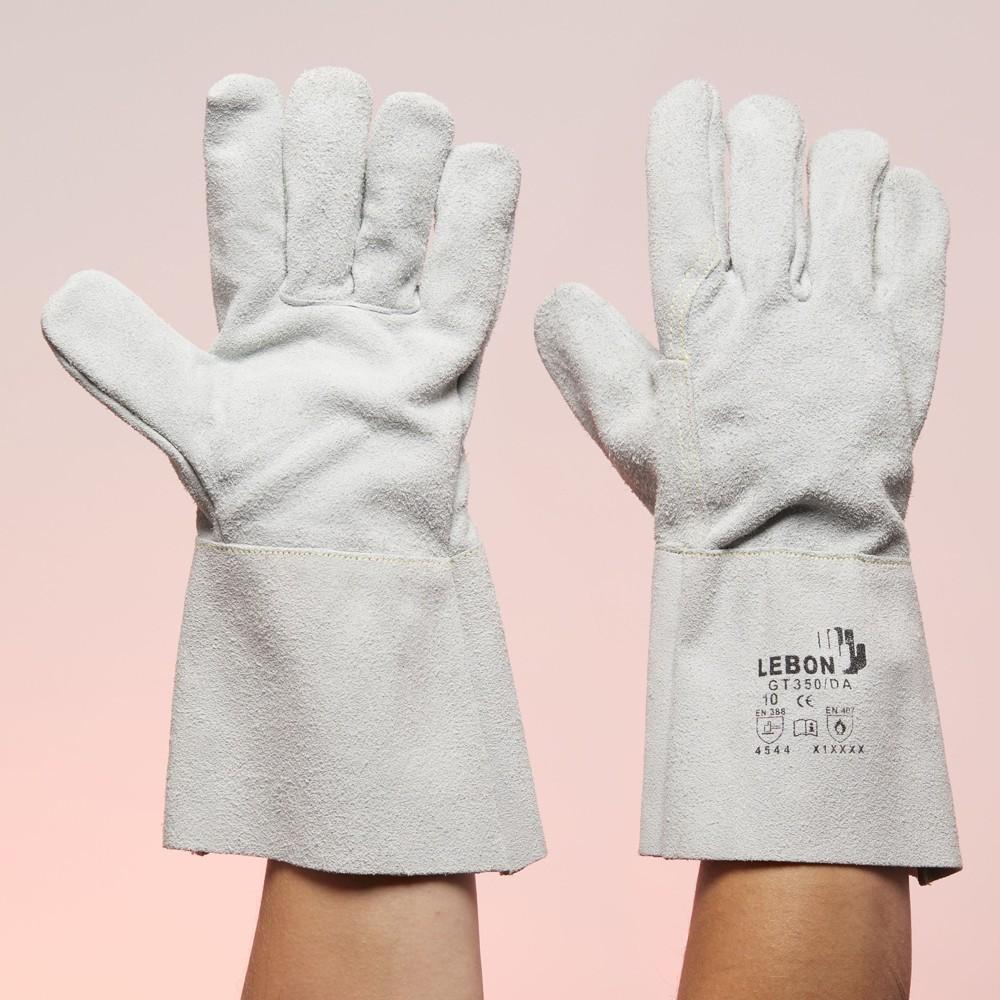 - Rukavice Lebon GT350/DA, pětiprstové rukavice proti pořezu ze štípané hovězí usně