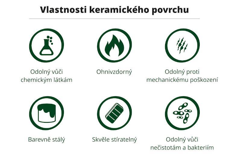 - Keramický povrch vhodný pro školy a vzdělávací instituce, při běžném provozu je téměř nezničitelný