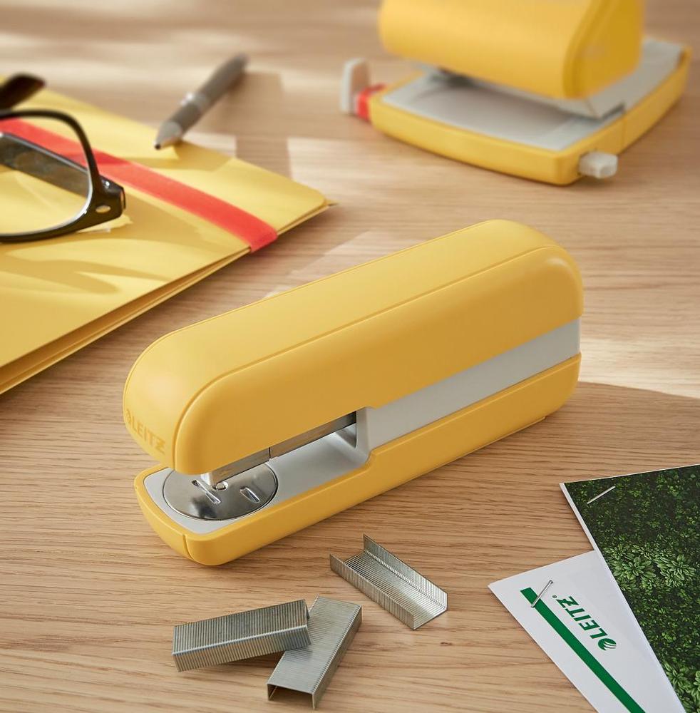 Značková řada Leitz Cosy vám umožní cítit se jako doma, ať už vás váš pracovní den zavede kamkoli. Díky minimalistickému designu a lákavé matné povrchové úpravě přidáte do svého pracovního prostoru styl a barvu. Sešívačka Leitz Cosy je pevná a spolehlivá sešívačka na 30 listů papíru s patentovanou sešívací DIT technologií, která zajistí vždy perfektní výsledky. Tato sešívačka na papír prvotřídní kvality je perfektním doplňkem vašeho domova nebo kanceláře, při práci s ní se neunavíte a zůstanete produktivní celý den.