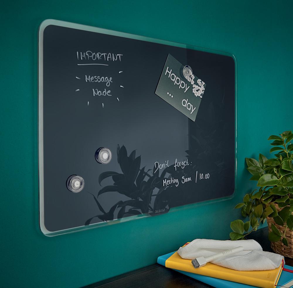 Značková řada Leitz Cosy vám umožní cítit se jako doma, ať už vás váš pracovní den zavede kamkoli. Díky minimalistickému designu a příjemným barvám přidáte do svého pracovního prostoru styl a barvu. Skleněná magnetická tabule na psaní Leitz Cosy je nástroj pro psaní poznámek, který lze opakovaně používat. Píšete jednoduše pomocí přiloženého suchého fixu, potom stačí otřít a začít znovu. Kachlový design tabule je perfektním doplňkem vašeho domova nebo kanceláře a pomůže vám bez stresu zvýšit produktivitu práce.