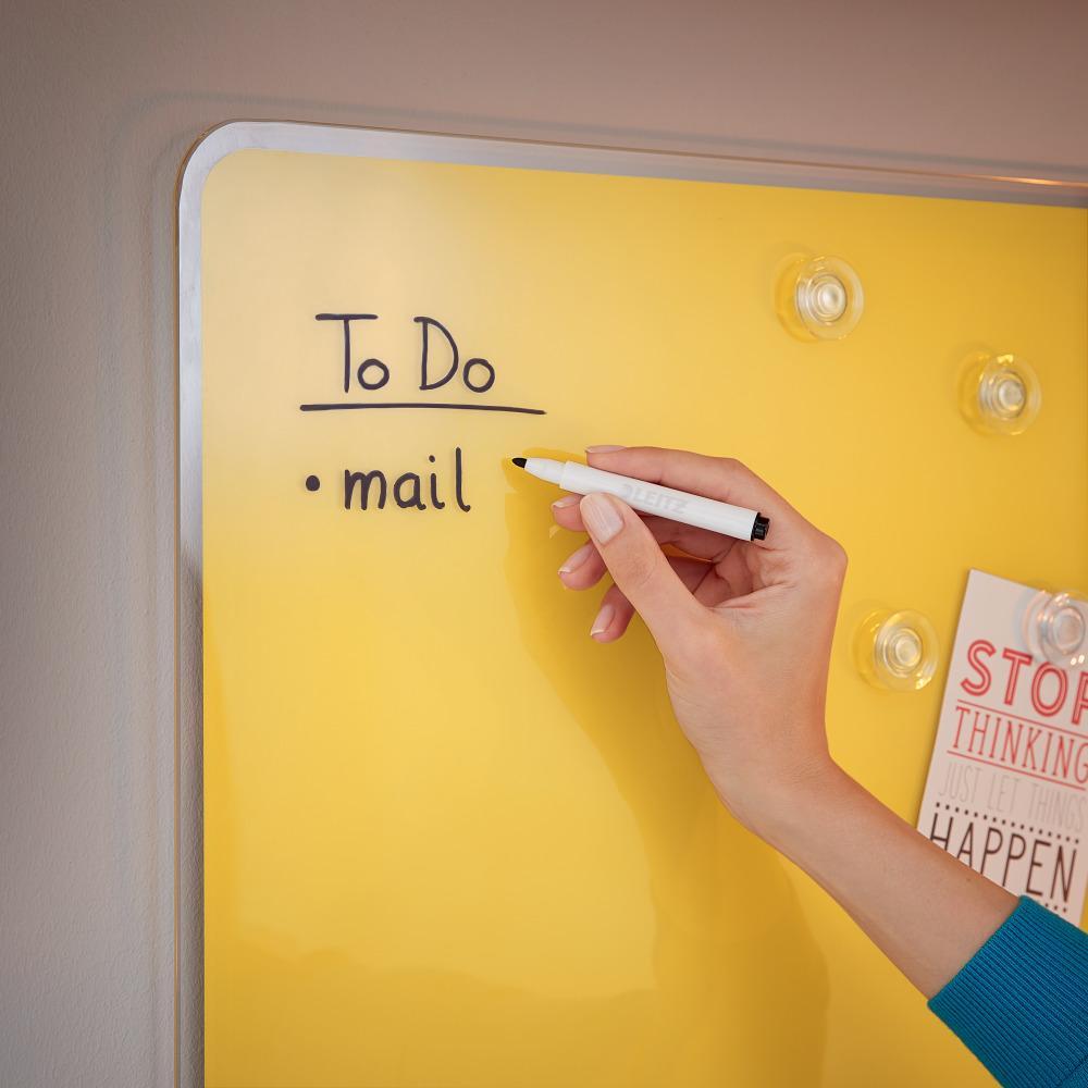 Značková řada Leitz Cosy vám umožní cítit se jako doma, ať už vás váš pracovní den zavede kamkoli. Díky minimalistickému designu a příjemným barvám přidáte do svého pracovního prostoru styl a barvu. Skleněná magnetická tabule na psaní Leitz Cosy je nástroj pro psaní poznámek, který lze opakovaně používat. Píšete jednoduše pomocí přiloženého suchého fixu, potom stačí otřít a začít znovu. Kachlový design tabule je perfektním doplňkem vašeho domova nebo kanceláře a pomůže vám bez stresu zvýšit produktivitu práce.