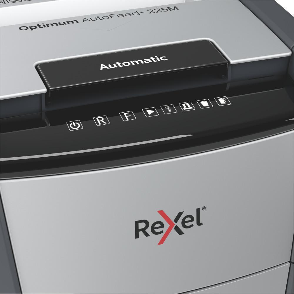 Skartovačka Optimum AutoFeed 225M automaticky skartuje až 225 listů papíru A4 (80 g /m2) mikro řezem P-5 (2x15mm). Tato skartovačka s automatickým podáváním je sofistikovaný kancelářský skartovač s výsuvným košem o objemu 60L. Není třeba ručně podávat papír nebo nejdříve odstraňovat svorky a kancelářské sponky, tento automatický skartovač papíru udělá vše za vás.