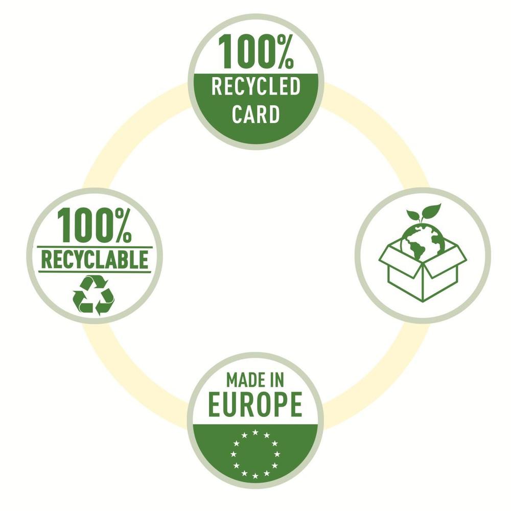 • Obal je 100% recyklovaný a 100% recyklovatelný bez obsahu plastů