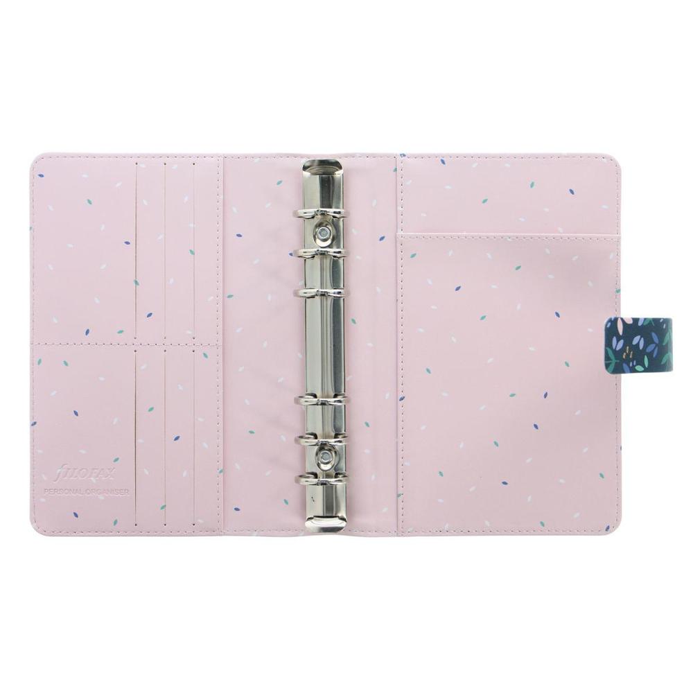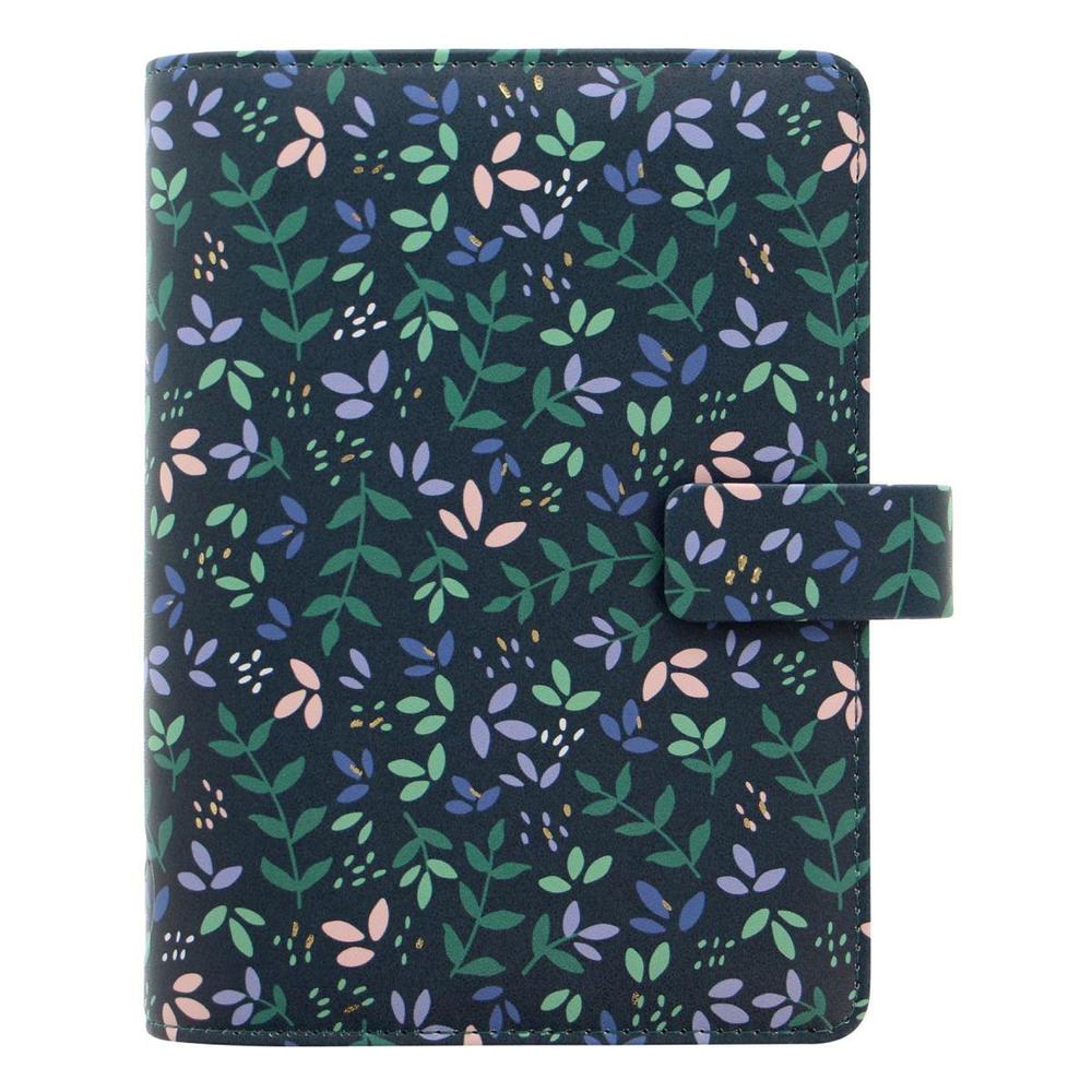 Desky diářů Filofax Garden jsou z hladkého materiálu koženého vzhledu s detaily ze zlaté fólie. Vnitřní stranu desek zdobí odlišná barva se vzorem.