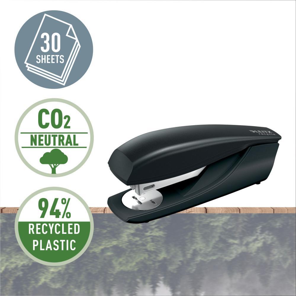 Výkonná prémiová sešívačka pro každodenní použití vyrobená z recyklovaného plastu. CO2 neutrální a 100% recyklovatelná - lze ji zcela rozebrat a rozdělit různé typy materiálů. Patentovaná technologie Direct Impact a drátky Leitz Power Performance P3 (24/6, 26/6) zajišťují vždy perfektní sešívání. Tato kvalitní a odolná sešívačka dokonale doplňuje ostatní produkty z ekologické řady Leitz Recycle, je určena pro opakované používání. Moderní a ekologické kancelářské výrobky vypadají dobře nejen v klasické kanceláři, ale i doma. S novými ekologickými výrobky společnosti Leitz můžete nejen vylepšit své pracovní prostředí, ale také přispět ke zlepšení prostředí naší planety.