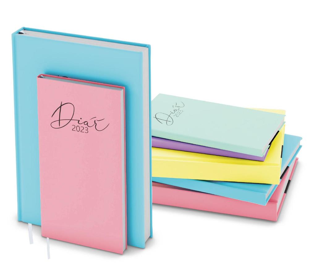 Týdenní diář v sametovém laminu s parciálním lakem v pastelově růžové barvě. Je vyráběný ve formátu A5, má velký prostor pro poznámky a plánování.