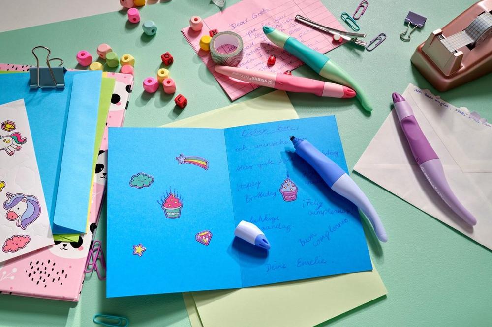 STABILO EASYoriginal Pastel přináší trend pastelových barev do školních tříd. Ergonomický roller vč. náplně pro začínající písaře a školáky od 6 let byl vyvinut ve speciálních verzích pro leváky a praváky. Pero s neklouzavou úchopovou zónou ergonomicky sedí v ruce a podporuje uvolněné držení, které zabraňuje předčasné svalové únavě a napětí při psaní. Snadná manipulace umožňuje rukopis, který je čistý a úhledný – žádné kaňky, žádné škrábance. S každou novou bombičkou je dodáván nový psací hrot: snadné doplňování. Produktová řada STABILO EASYoriginal nabízí výběr náplní, s královsky modrým zmizíkovatelným inkoustem pro školní použití nebo černým nebo červeným inkoustem. Náhradní náplně jsou k dispozici ve 2 šířkách stopy: 0,3 mm (fine) v modré barvě pro jemné psaní a 0,5 mm (medium) v modré, černé a červené. Obsahuje také štítek na jméno. Uzávěr lze nasadit na konec pera.