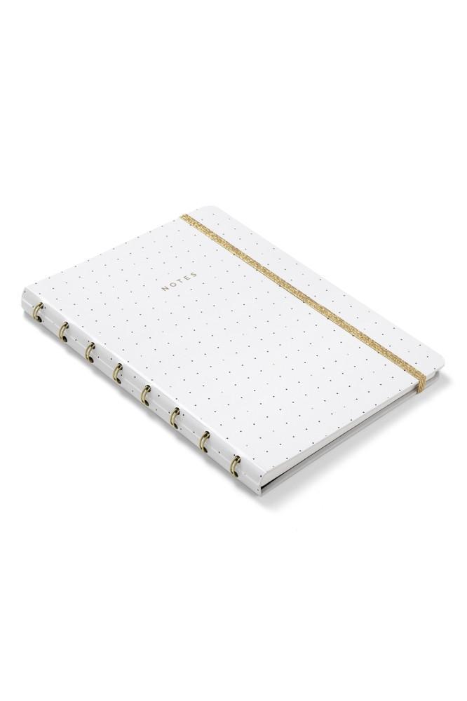 - Vaše poznámky a myšlenky budou jenom zářit v tomto znovu plnitelném zápisníku Filofax Notebook A5 z kolekce Moonlight, kterou zdobí zlaté detaily vzorovaná vnitřní strana desek v kontrastních barvách