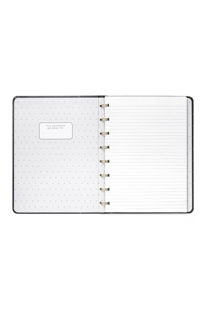 - Jeho zlatá dvoudrátová vazba umožňuje zápisníku ležet naplocho a barevně ladící gumička na zavírání vám pomůže udržet vše na jednom místě