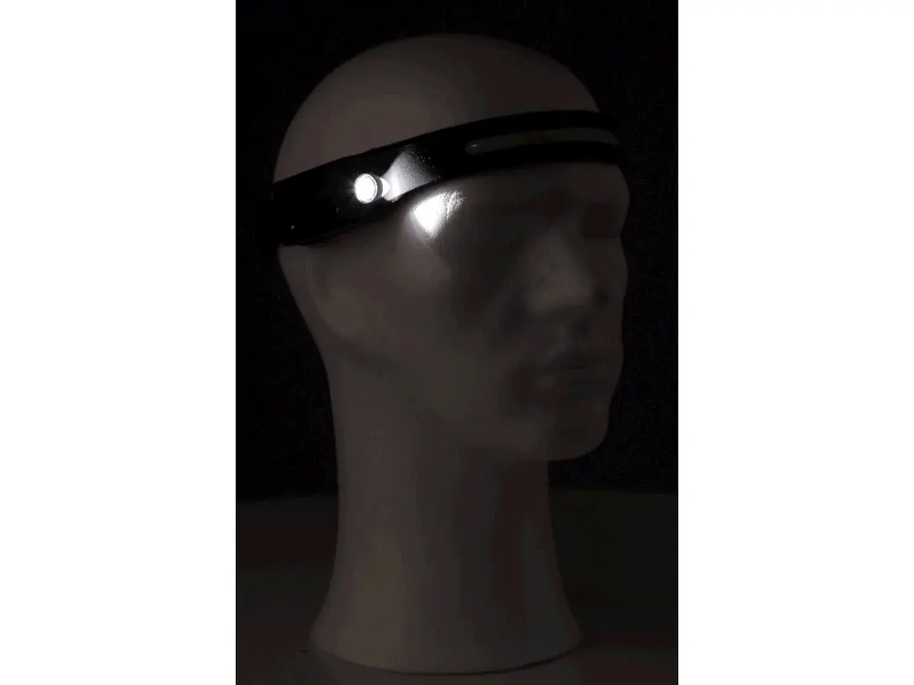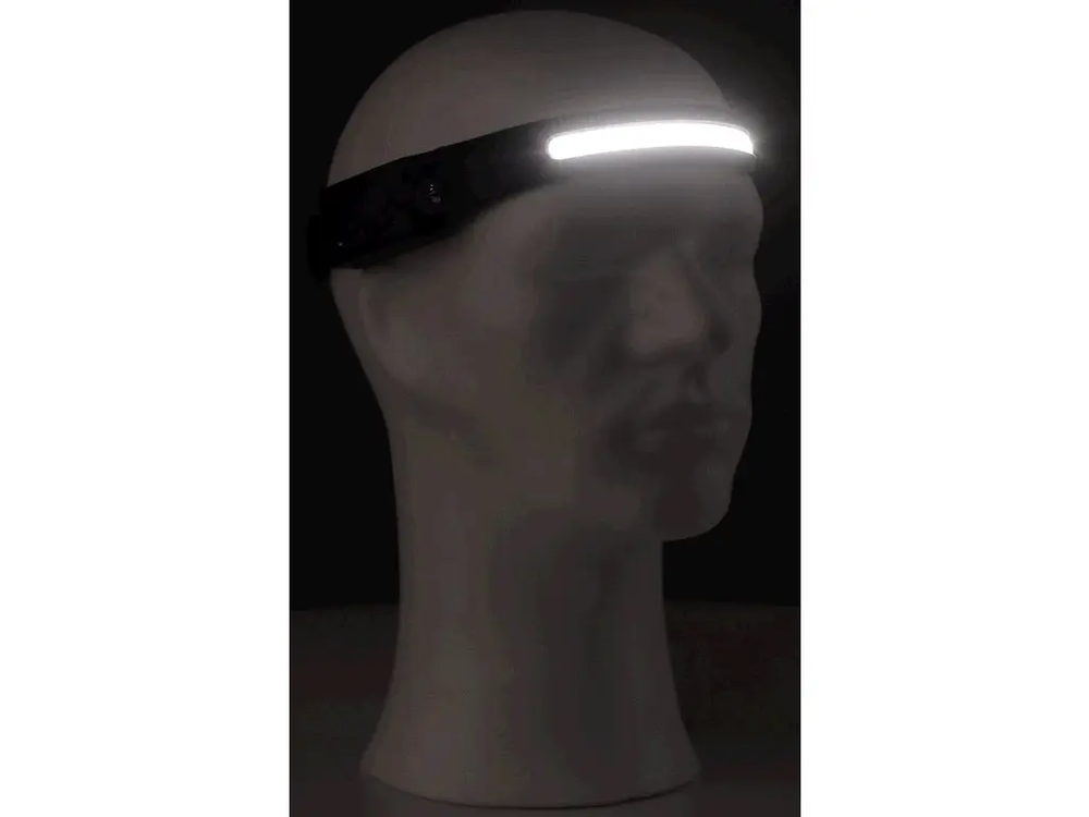 - Čelová svítilna s XPE LED páskem a bočním COB LED světlem, voděodolná IP X4