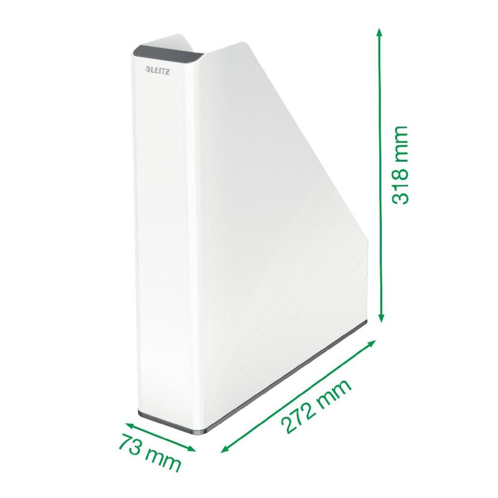 Výrazný moderní stojan na časopisy v prémiové kvalitě značky Leitz, v módním dvoubarevném provedení a se stylovým lesklým povrchem, který se hodí do každé kanceláře nebo domácnosti.