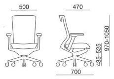• Rozměry: šířka opěráku: 48,0 cm; výška opěráku: 57,0 cm; šířka sedadla: 50,0 cm; hloubka sedadla: 47,0 cm; nastavení výšky sedu: 43,5 - 56,0 cm (Výška základny: 43,5 – 52,5 cm (od země) Výška područek: 17 – 22 cm (od základny) Výška opěradla: 97 – 105 cm (od země))