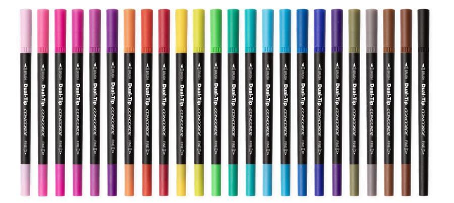 - Umělecká sada popisovačů se dvěma různými průměry hrotů: fineliner s hrotem o průměru 0,7 mm a štětcový popisovač s variabilním hrotem od 1–4 mm, díky nim můžete vytvořit nádherná umělecká díla