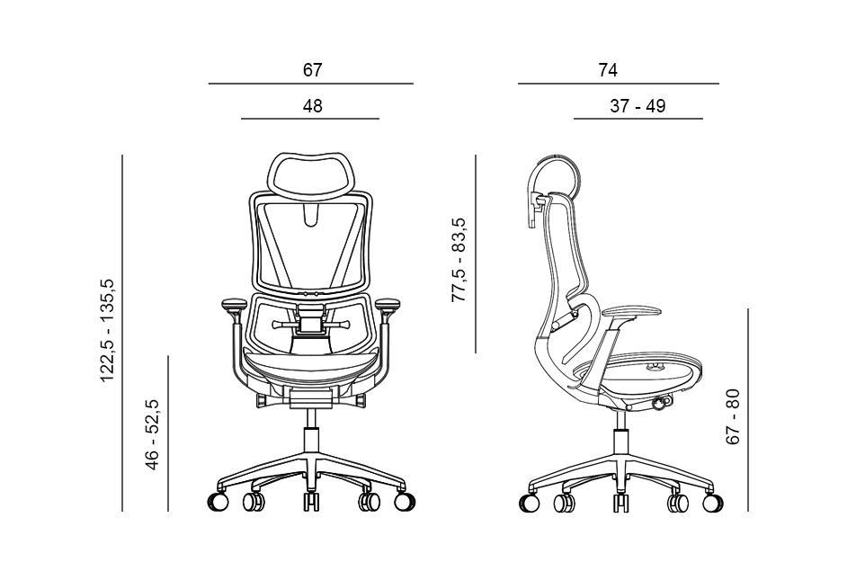 • 4D výškově nastavitelné područky s měkkou dotykovou plochou nastavitelnou podélně, úhlově a do šířky, naklápějící se s opěradlem