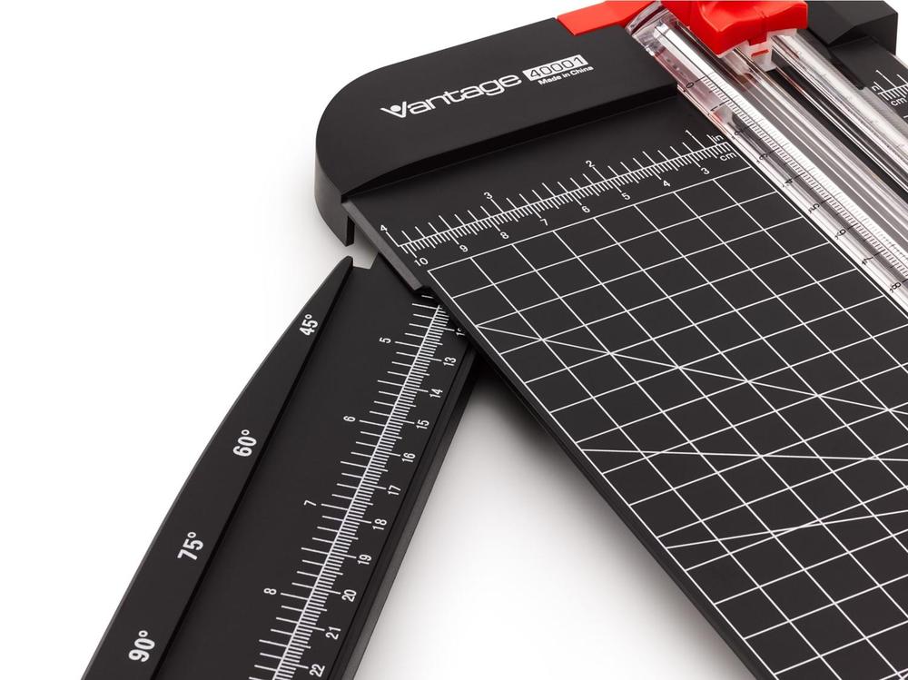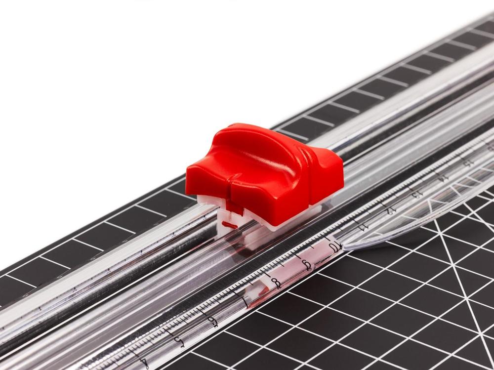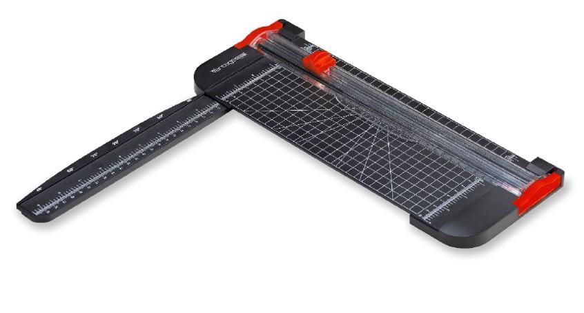 Kvalitní řezací pravítko s podložkou pro maximální využití. Vhodná k řezání papíru, kartonu, vinylu a fotografií. Bílý potisk metrickou sítí pro jednoduché, přesné a rychlé řezání. Při řezání na výšku lze pravítko vyklopit. Řezná hlava má pevný nůž ve tvaru V a je ukryta v posuvném bloku. Papír je fixován pomocí lišty. Protiskluzové nožičky zabraňují posunutí řezačky při manipulaci. Díky své nízké hmotnosti lze řezačku snadno přenášet. Rozměry umožňují prostorově úsporné skladování. Ideální pro hobby a školu.