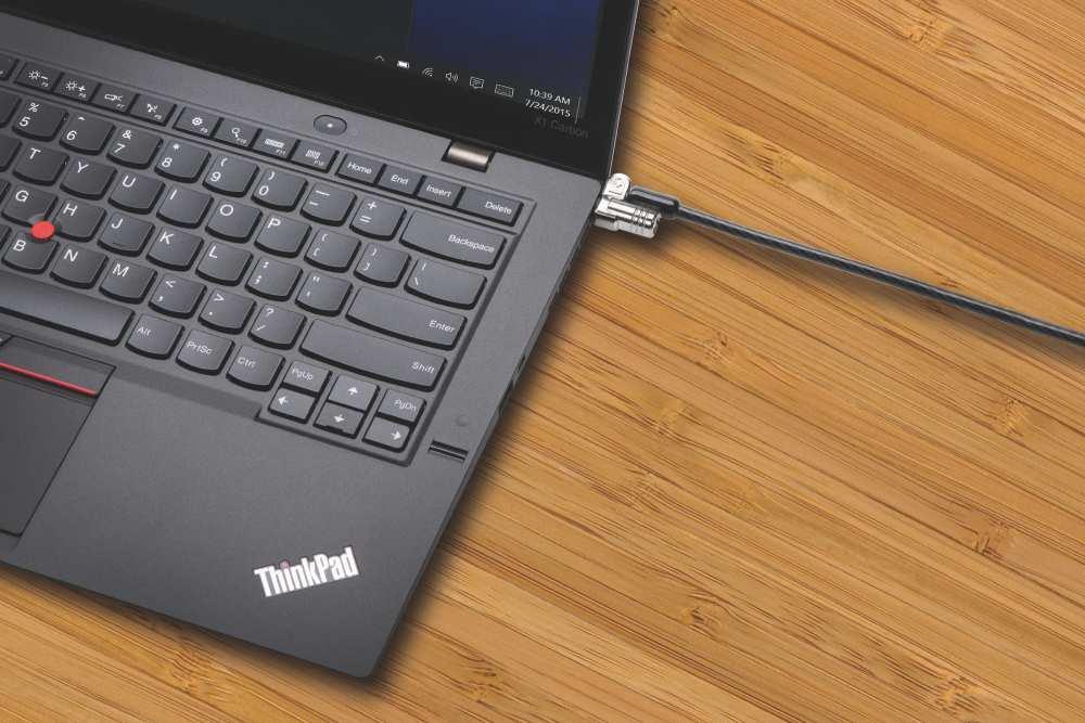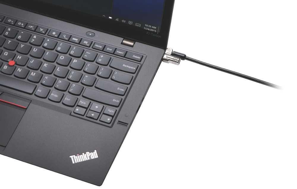 - Kompaktní hlava zámku (průměr 10 mm) byla navržena tak, aby splňovala požadavky velmi tenkých zařízení, která jsou vybavena standardními zabezpečovacími zdířkami Kensington Security Slot™ (T-Bar™) používanými na 90 % podnikových zařízení po celém světě