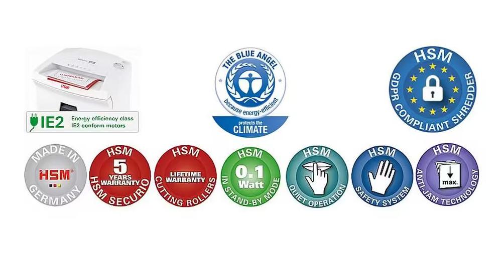 - Skartovací stroj je držitelem certifikátu Blue Angel - pro výrobek nejvyšší kvality šetrný k životnímu prostředí