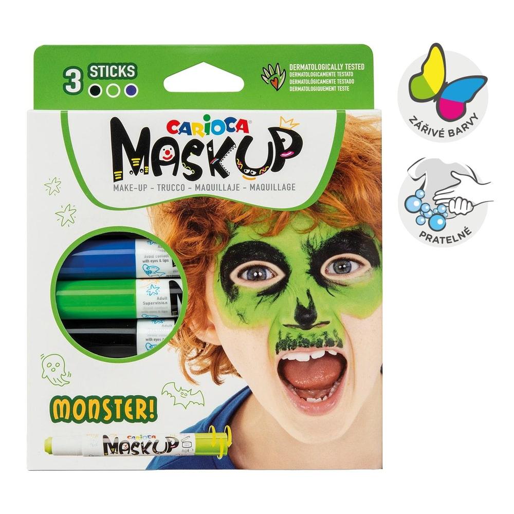 Sada barev inspirovaná strašidelnými příšerami a monstry. Snadno se mísí, čímž umožňují vytvořit nekonečné množství odstínů. Jednoduše otočte tyčinkou a aplikujte na pleť. Podrobný návod na zadní straně krabičky. Nevhodné pro děti do 3 let.