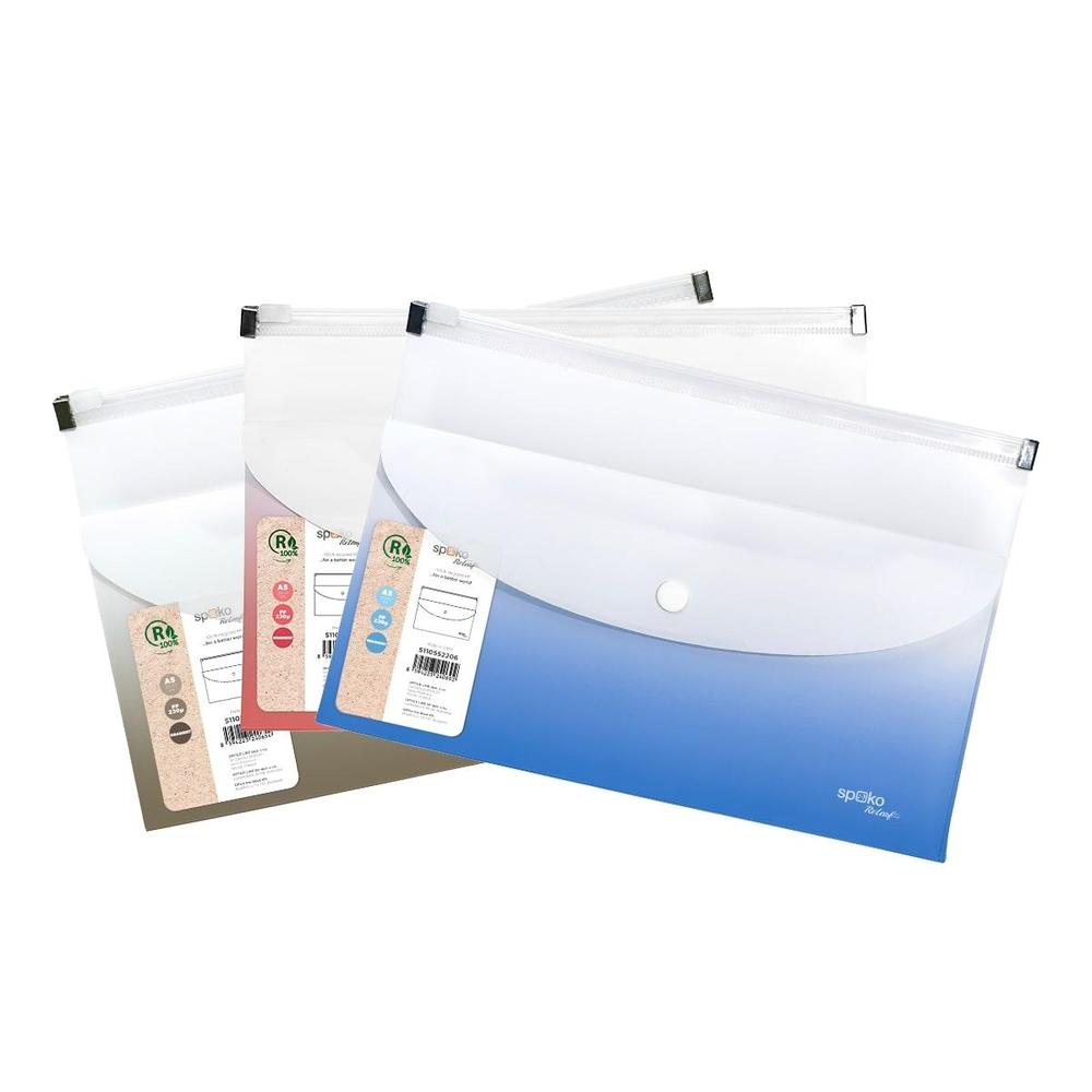 Kombinovaná obálka s úložnou kapsou je ideální pro menší dokumenty a drobné předměty. Hlavní kapsa se uzavírá pomocí zipu, který chrání obsah uvnitř. Menší přední kapsa je opatřena drukem pro snadnou manipulaci.