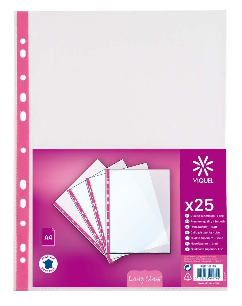 Závěsné kapsy s růžovým hřbetním proužkem. Více informací