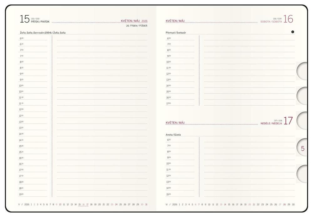 Denní manažerský diář ve větším formátu B5 je ideálním pomocníkem pro efektivní plánování schůzek, úkolů i volného času. Nová elegantní grafika zajišťuje maximální přehlednost vašich poznámek, zatímco moderní matný hnědý obal dodává diáři luxusní vzhled. Perfektní volba pro manažery a všechny, kteří chtějí mít svůj čas pod kontrolou.