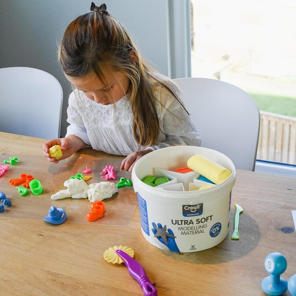 Extrémně jemná, snadno tvarovatelná hmota, která nikdy nevysychá. Je ideální pro podporu motorického vývoje malých dětí. Jasné a živé barvy, které upoutají pozornost nejmenších objevitelů. Praktický uzavíratelný kbelík pro opětovné uschování.