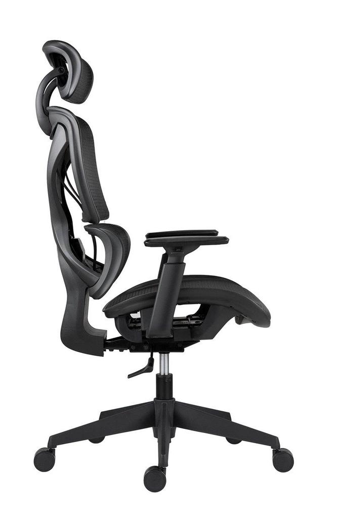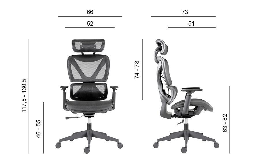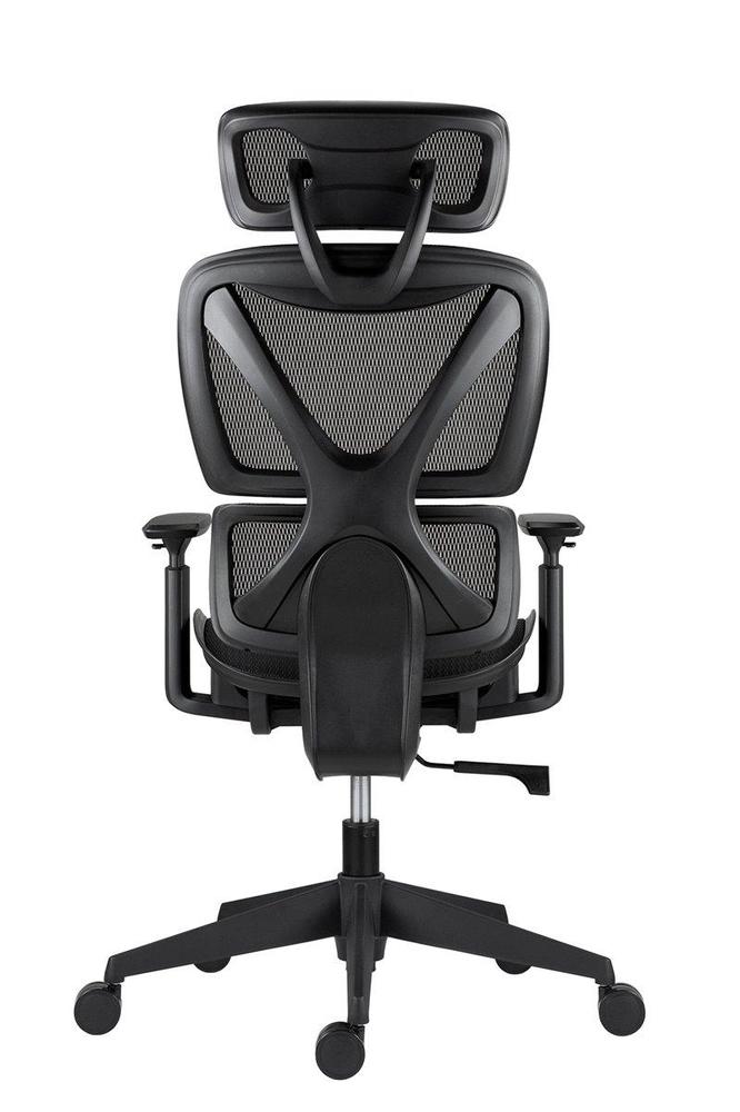 - Kancelářská židle se sítí na sedáku, opěráku a podhlavníku, prodyšnost zvyšuje komfort a hygienu sezení, zabraňuje přehřívání dotykových partií těla