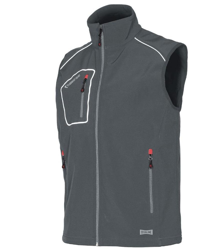 - Softshellová vesta se třemi vnějšími a praktickou vnitřní kapsou, reflexní vložky pro zvýšení viditelnosti uživatele