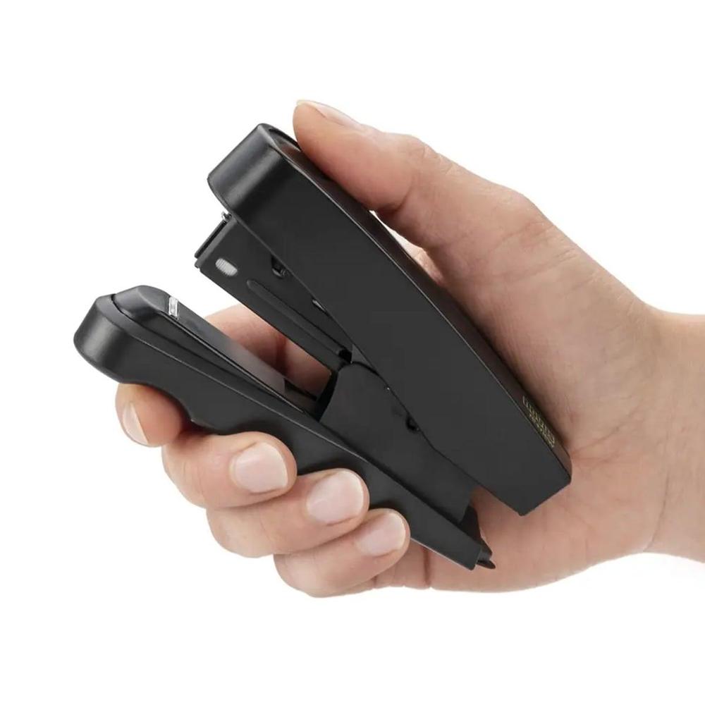 Trvale udržitelná sešívačka pro efektivní práci doma nebo v kanceláři. Odolná, celokovová konstrukce s horní částí z udržitelného recyklátu pro dlouhou životnost a spolehlivý výkon. Technologie plochého sešívání poskytující úsporu místa během archivace. Integrovaný odstraňovač sponek, horní plnění pro snadné a rychlé doplnění. Snadné přibíjení sponek na vertikální povrch. Ergonomický design a moderní vzhled.