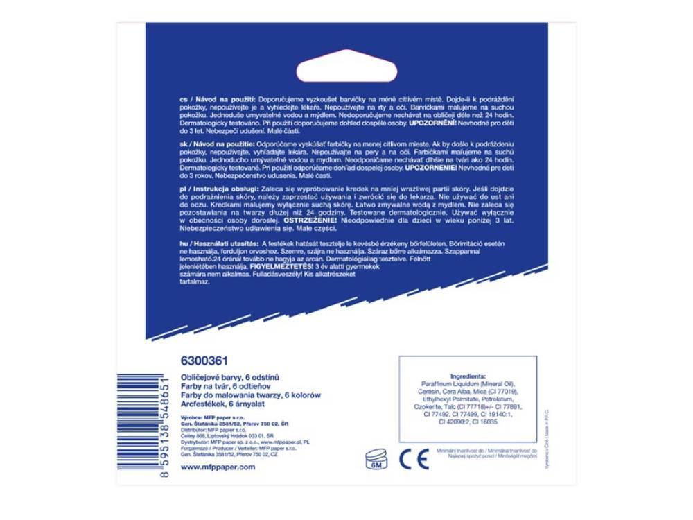 - Barvy na obličej určené na líčení